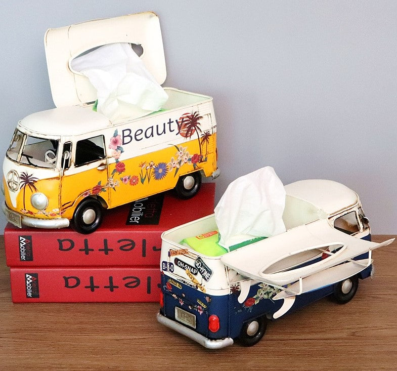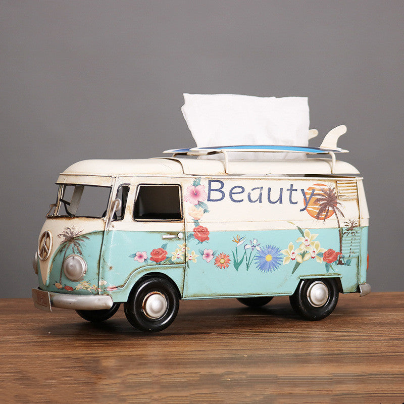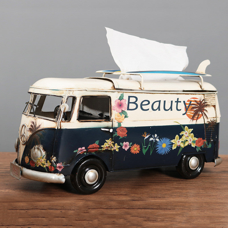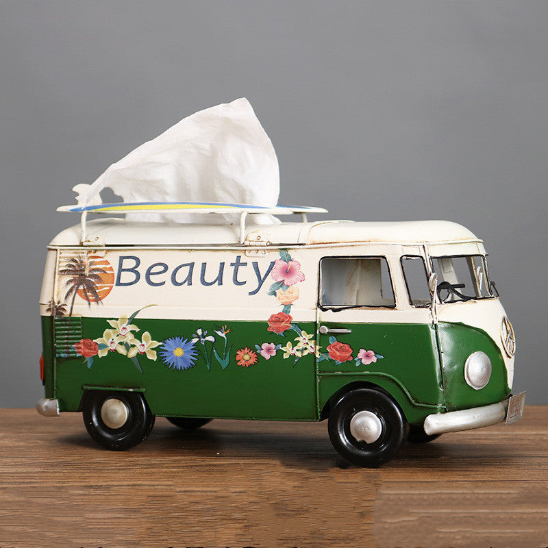 Multicolor Flower Bus Model Figurines Retro Car Tissue Box