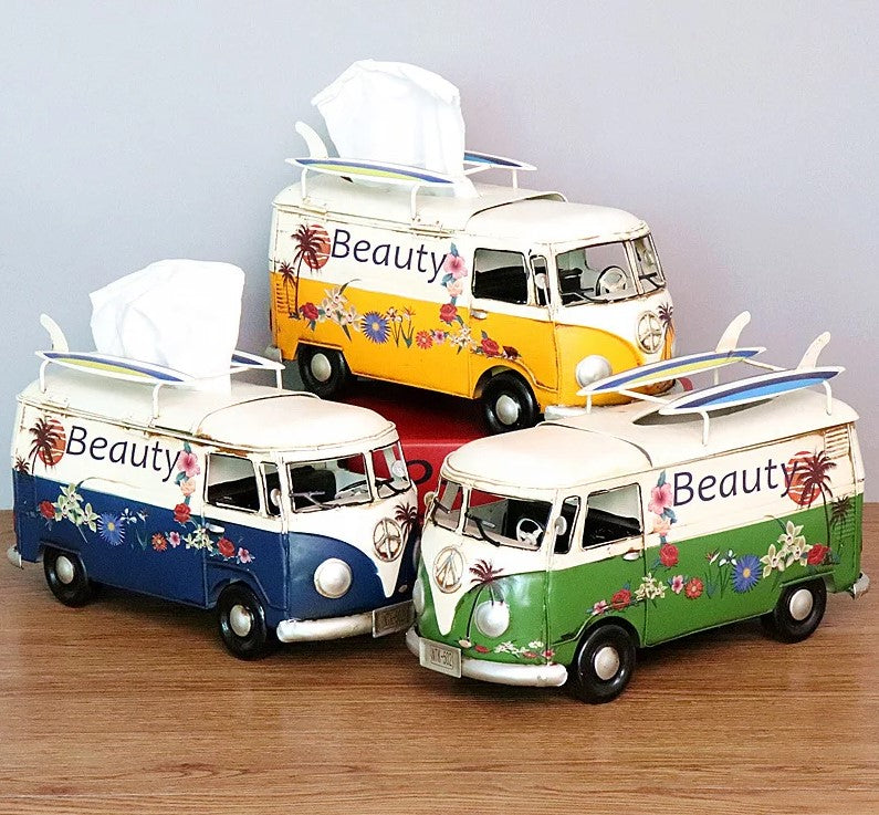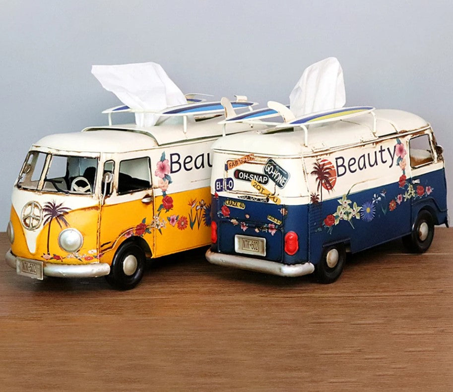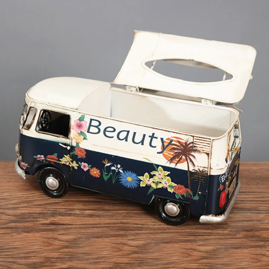 Transform your space with a blend of utility and elegance through the Multicolor Flower Bus Model Figurines Retro Car Tissue Box. This unique piece combines the charm of retro car design with the practicality of a tissue box, making it a delightful addition to any home. Crafted with meticulous attention to detail, it offers more than just functionality—it's a piece of art that tells a story.