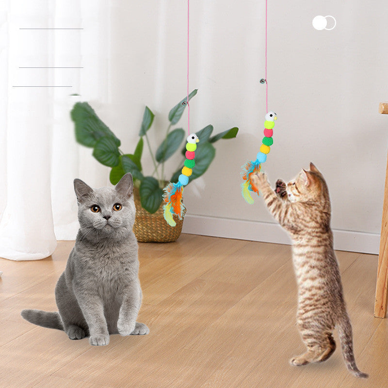 - Our Elastic Hanging Door Teasing Cat Rope falls under the category of funny cat sticks, known for their ability to keep cats entertained and mentally stimulated. This toy is not just a simple stick; it’s a dynamic plaything that encourages physical activity and sharpens your cat’s reflexes.